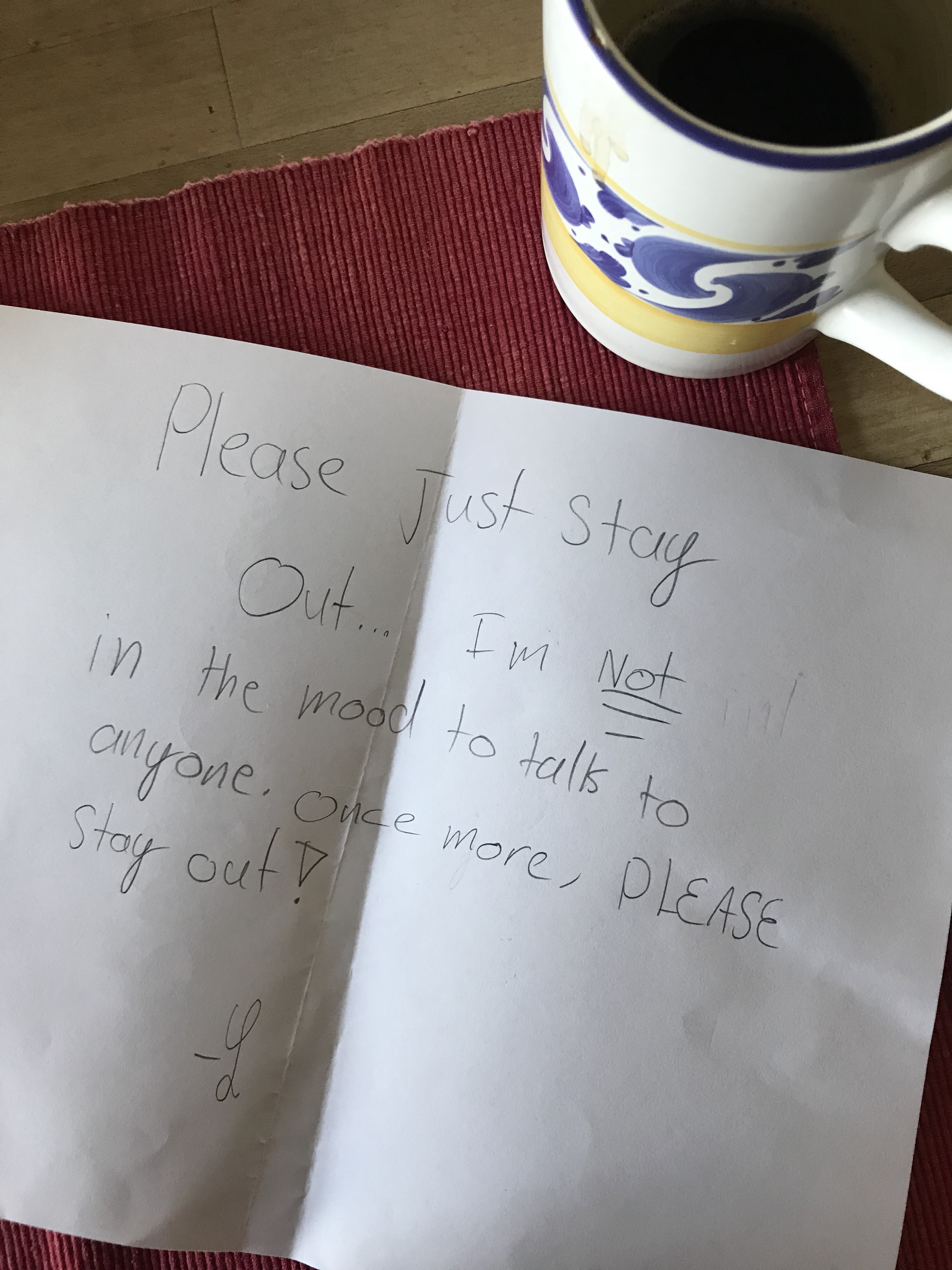 So, my youngest just had her first kiss last night. And when I mentioned that I thought this could lead to complications and that I wasn’t really cool with her going against my “no dating” rules for 12 year olds, she posted this on her door: